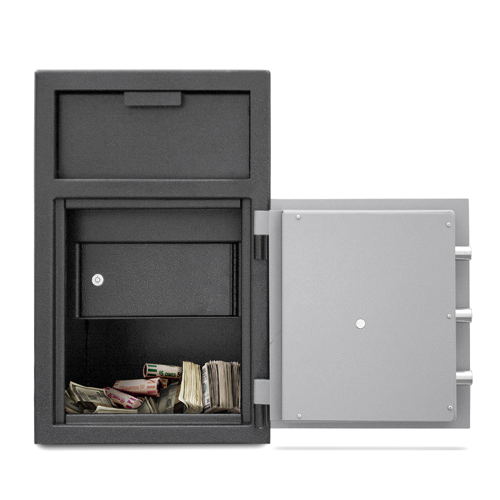MESA's MFL Series Depository Safes are designed for protection against robbery as well as internal theft, allowing quick deposits and secure storage for cash and miscellaneous valuables without actual access inside the money safe. They also protect money collections where immediate deposits are required. A depository safe is a necessity in every cash handling business.
