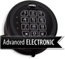 Advanced electronic lock in sleek black finish. Protected by drill-resistant hardplate