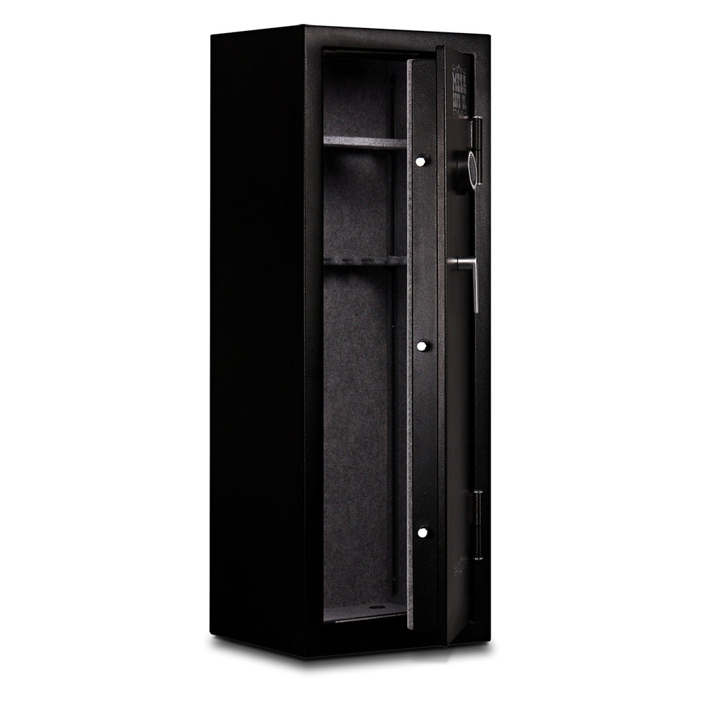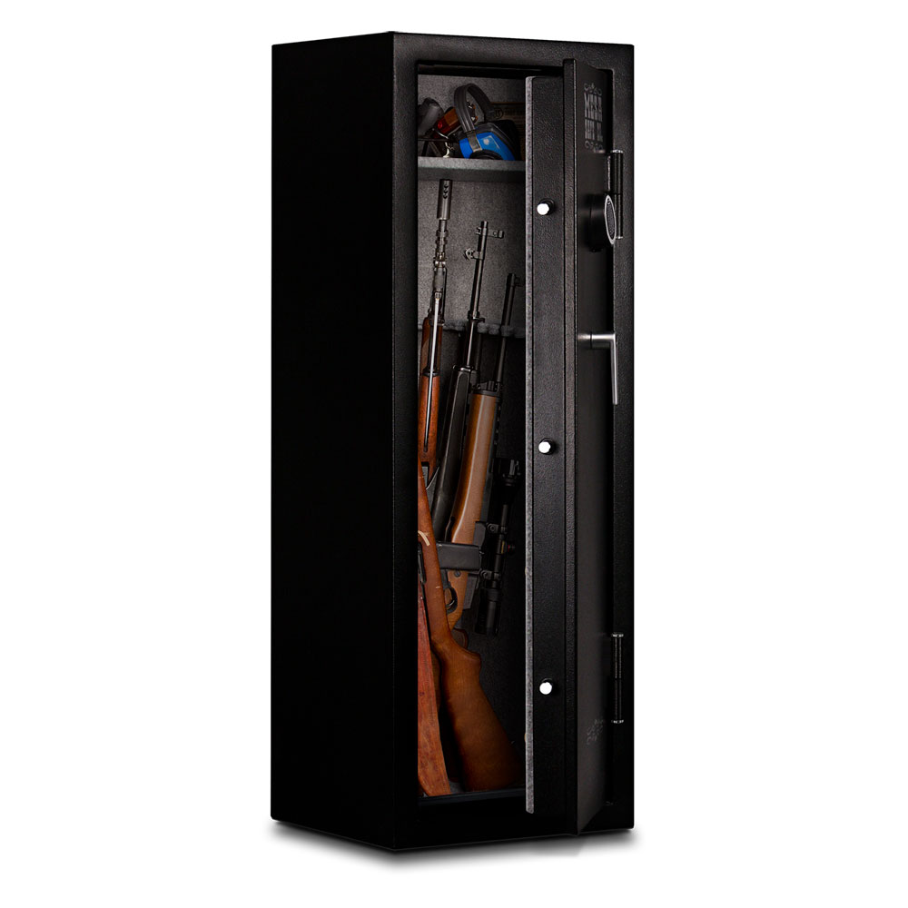 The MGL Series consists of three different types of models. Each model contains a 30-minute fire rating that has been tested under extreme temperatures to withstand a high degree of heat, ensuring that your contents inside your safe are intact and operable. Each safe weighs at least 200 pounds providing strength, durability and confident placement that will prevent your safe from being removed or stolen from its place. To add even more security, each safe contains four anchor holes to be able to secure your safe to the floor for permanent placement. The gun safes have interior shelving that can be adjusted or removed for your storage convenience. Each safe also contains different types of storage capabilities to organize any type of guns you have. Whether you need to store larger firearms such as rifles or shotguns or smaller weapons like knives and handguns, each safe has a nice organized storage system that will hold all types of weapons.