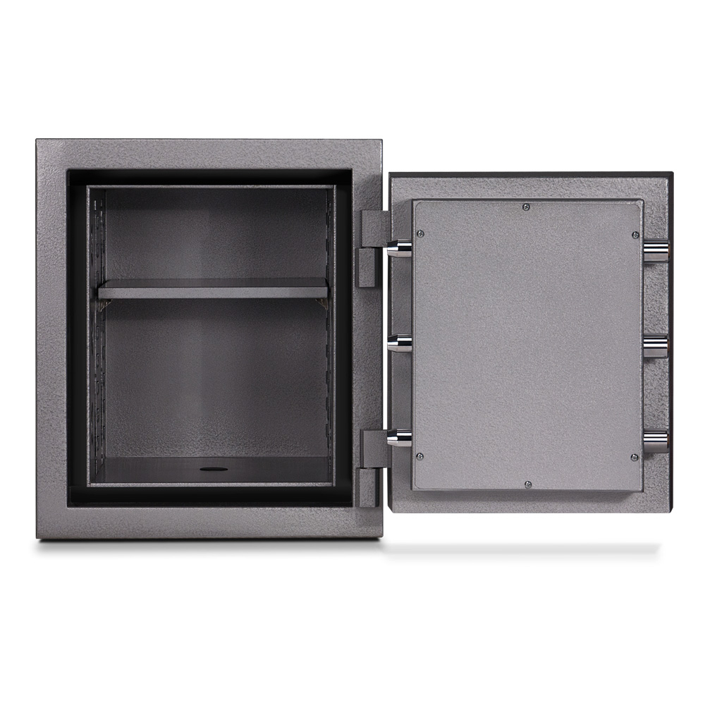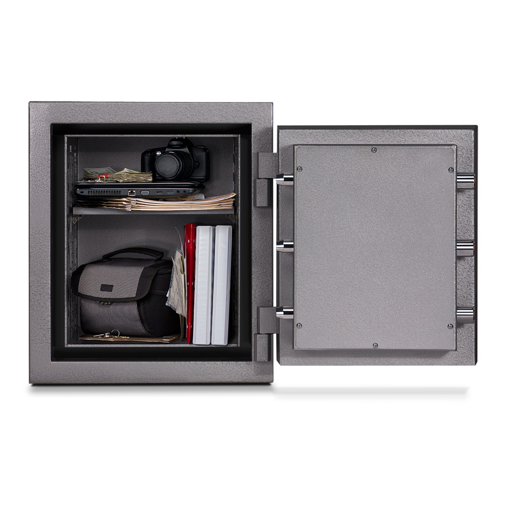 MESA's MSC series Burglary & Fire Composite Safes offer a unique design that combines all the security features of high security safes from burglary and the peace of mind achieved with a fire safe. These safes offer a two-hour fire rating that is tested under extreme temperatures of heat in a fire endurance test. After it has been tested to endure and withstand the extreme heat, all while keeping the contents inside safe and protected, it is then tested for impact.