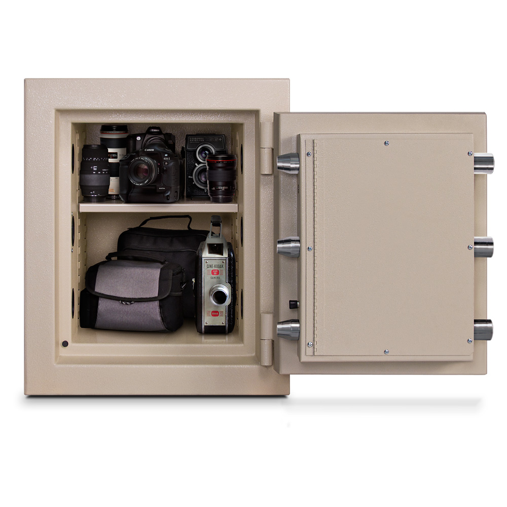 These safes are built to withstand temperatures up to 1850° Farenheit for durations up to 2 hour. The locks are drill & punch resistant. Safes are equipped with 1.5″ thick chrome plated locking bolts & a 2.75″ thick defense barrier of inner & outer plates.