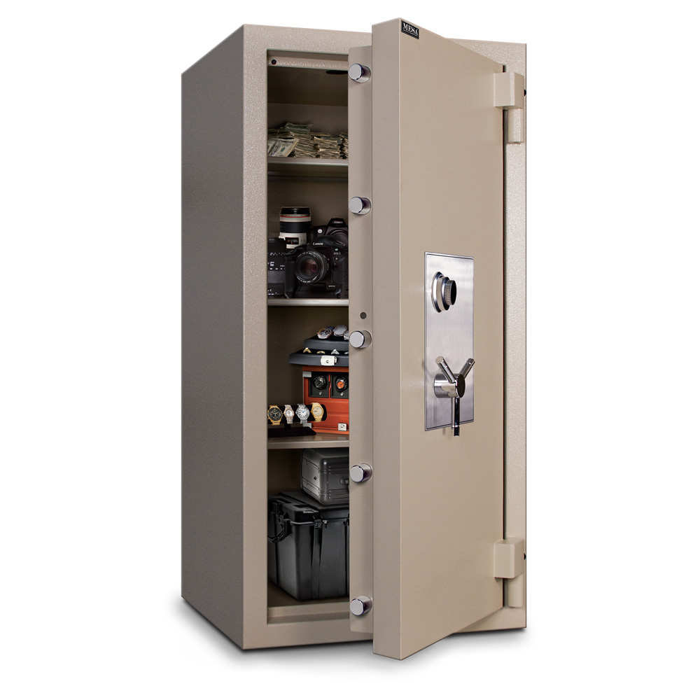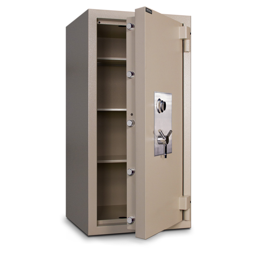 These safes are built to withstand temperatures up to 1850° Farenheit for durations up to 2 hour. The locks are drill & punch resistant. Safes are equipped with 1.5″ thick chrome plated locking bolts & a 2.75″ thick defense barrier of inner & outer plates.