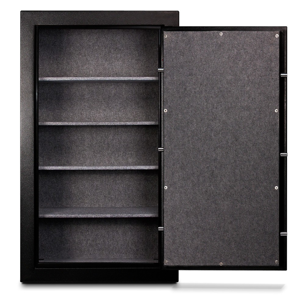 Safe Features Approx. 20.2 cf capacity 30 Minute fire rating 12 Gauge door & body Three 1″ Diameter locking bolts Three 1″ diameter dead bolts User friendly electronic lock Override key system Textured black finish Satin chrome L handle 180 Degree door opening Internal power outlet & USB feature Batteries not included. Approx. Interior Dimensions L 18.875″ x W 32.625″ x H 56.75″ All measurements and weights that are listed are approximate